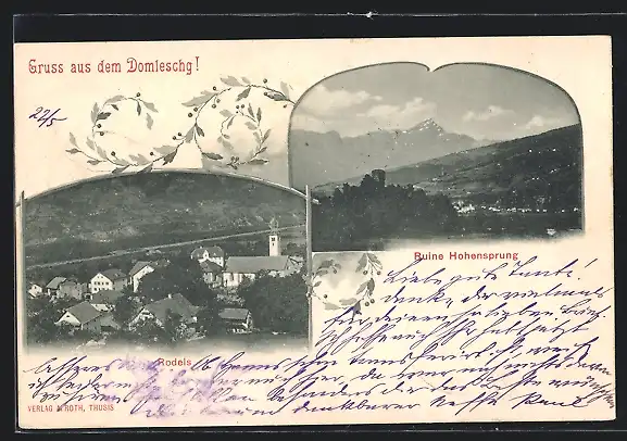 AK Rodels, Ortsansicht und Ruine Hohensprung