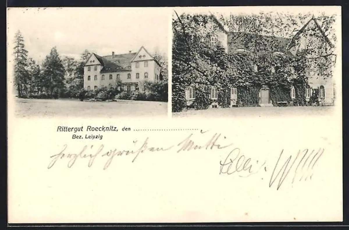 AK Röcknitz /Leipzig, Rittergut Röcknitz, Vorder- u. Rückansicht