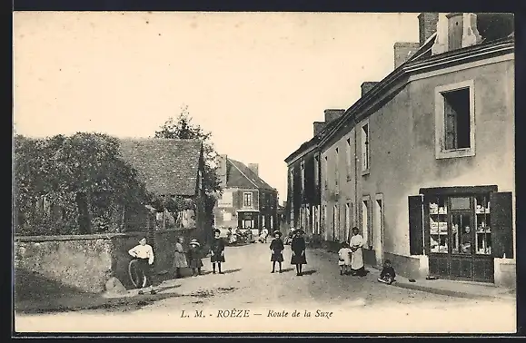 AK Roézé, Route de la Suze avec enfants jouant dans la rue