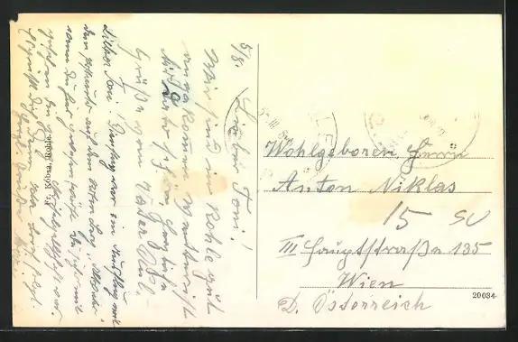 alte Ansichtskarte, gelaufen, Briefmarke entfernt, Eckschaden oben re., guter Zustand