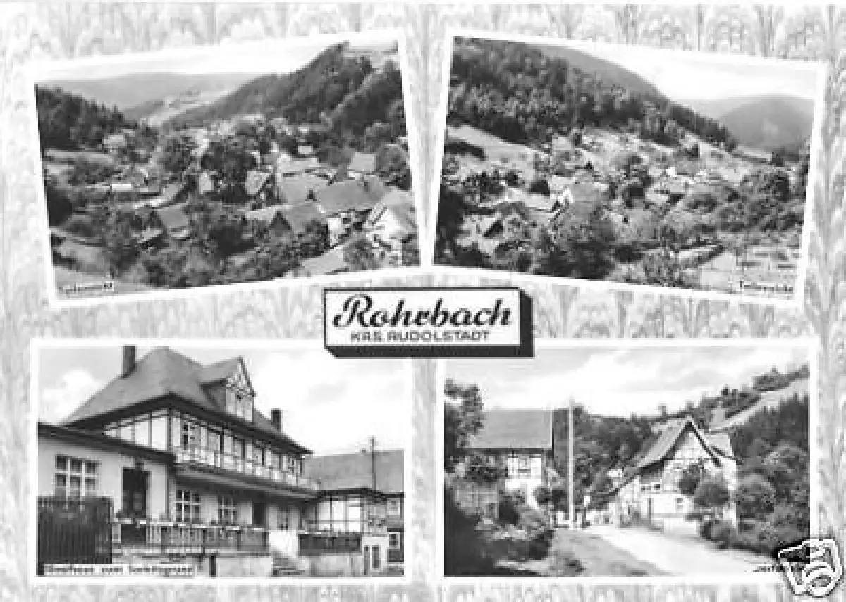 Ansichtskarte Rohrbach Kr. Rudolstadt vier Abb. Erhaltung II, Eckbug oben links ungelaufen Druckvermerk: 1966 Herstellungsland: DDR Verlag: Bild und Heimat Reichenbach - 10/2455