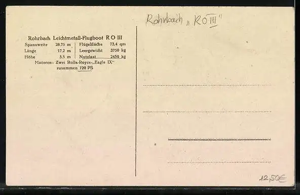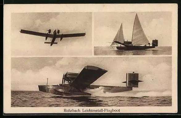 AK Rohrbach Leichtmetall-Wasserflugzeug RO III. bei der Landung