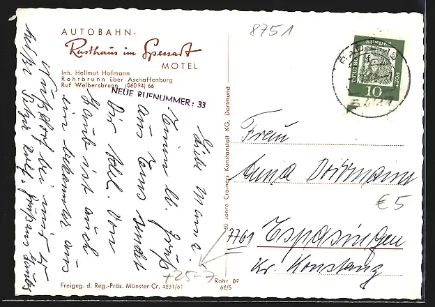 AK Rohrbrunn über Aschaffenburg, Autobahn-Rasthaus im Spessart