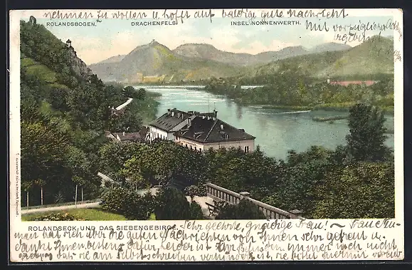 AK Rolandseck, Ortsansicht und das Siebengebirge