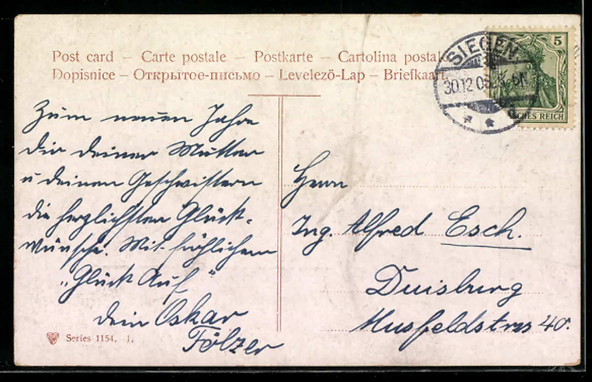 alte Ansichtskarte, gelaufen, Oberflächenschaden oben mittig, guter Zustand