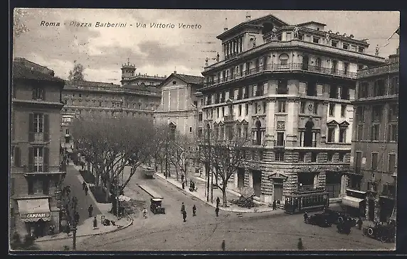 AK Roma, Piazza Barberini, Via Vittorio Veneto, Strassenbahn