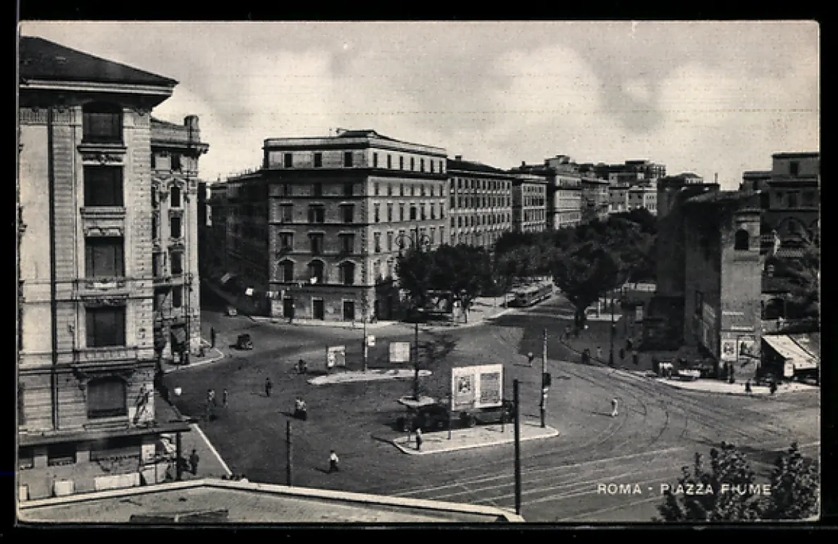 AK Roma, Piazza Fiume con edifici e strada animata