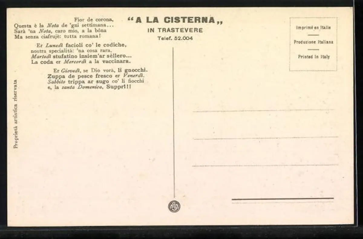 AK Roma, Ristorante A la Cisterna