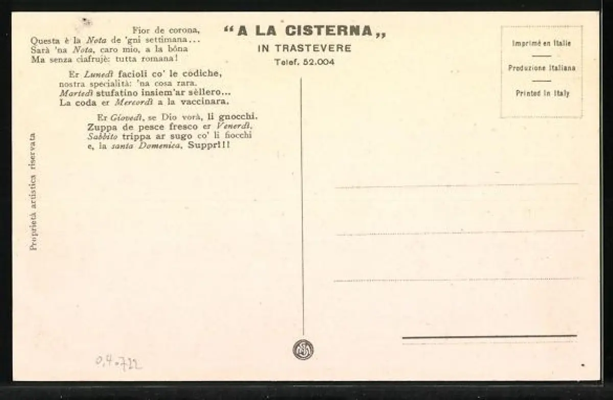 AK Roma, Ristorante A la Cisterna