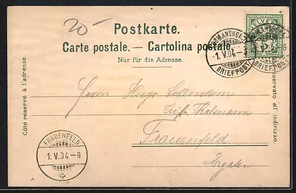alte Ansichtskarte, gelaufen 1904, guter Zustand