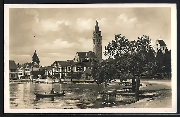 AK Romanshorn, Partie am See mit Blick zur Kirche
