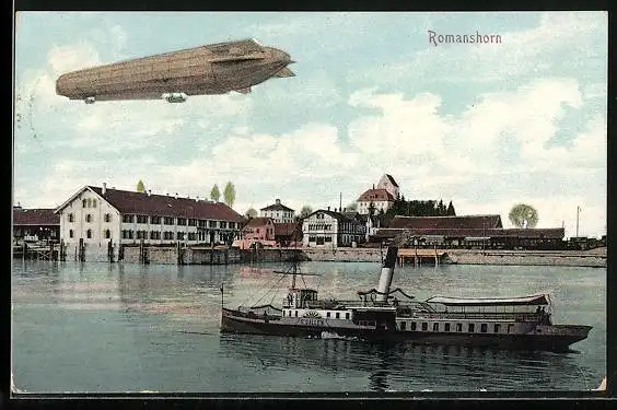 AK Romanshorn, Zeppelin mit einem Dampfer