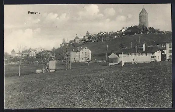 AK Romont /FR, Ortsansicht mit Turm