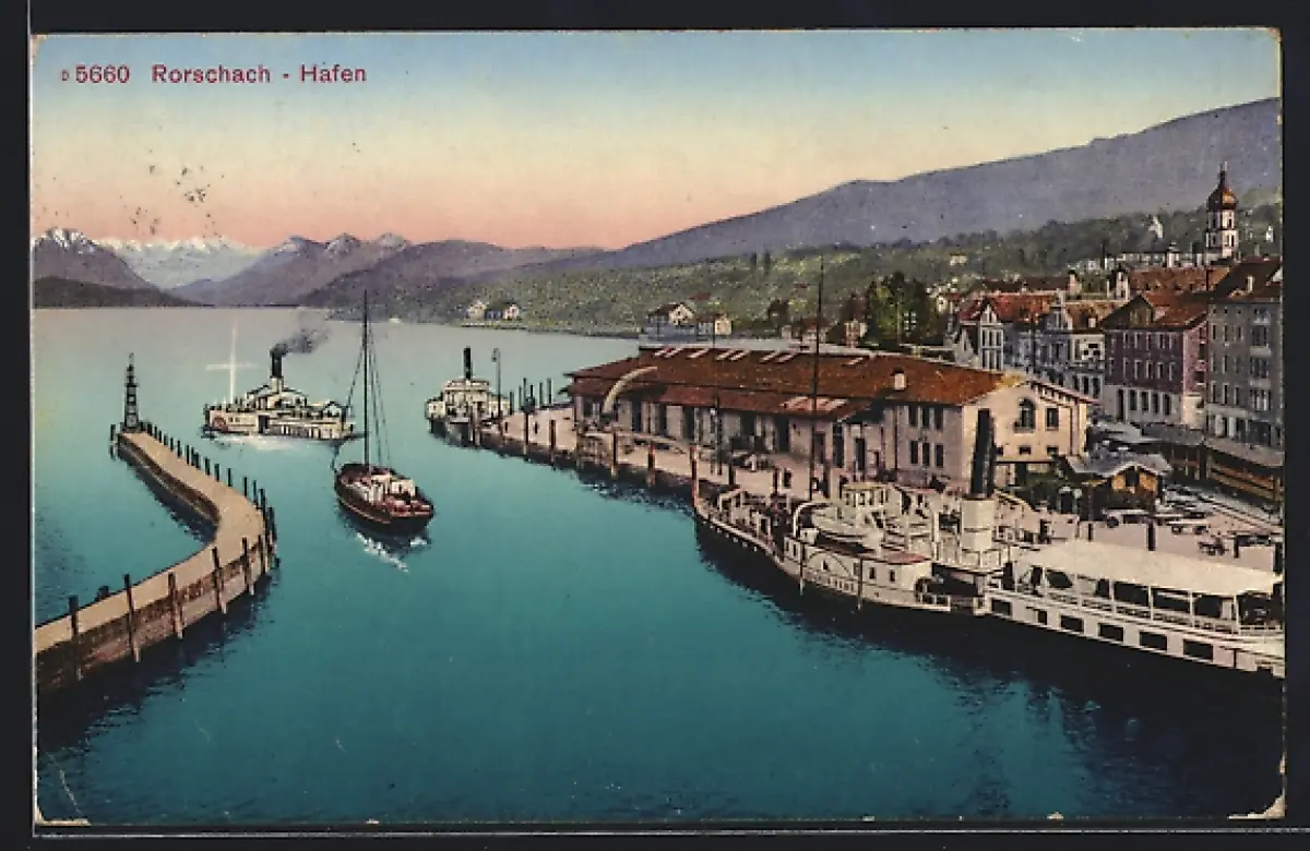 AK Rorschach, Hafen mit Dampfern