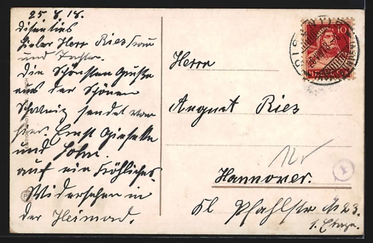 gelaufen 1918, Eckknick li. unten, guter Zustand