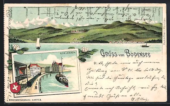 AK Rorschach, Ortsansicht mit Eisenbahn, Partie am Bodensee
