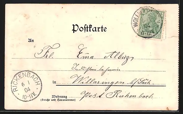 alte Ansichtskarte, gelaufen 1904, Einriss li. oben, guter Zustand