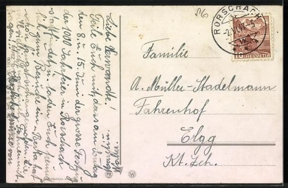 AK Rorschach, Ortsansicht mit Frosch-Chor