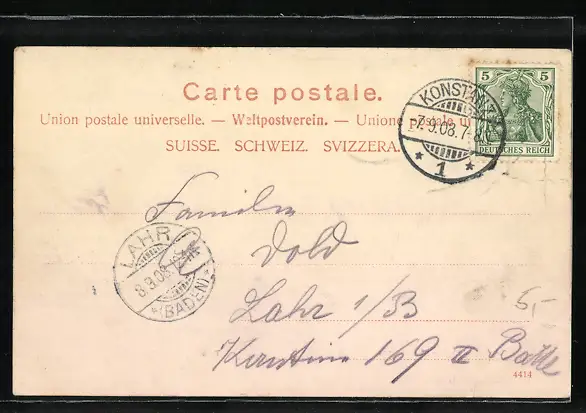alte Ansichtskarte, gelaufen 1908, guter Zustand
