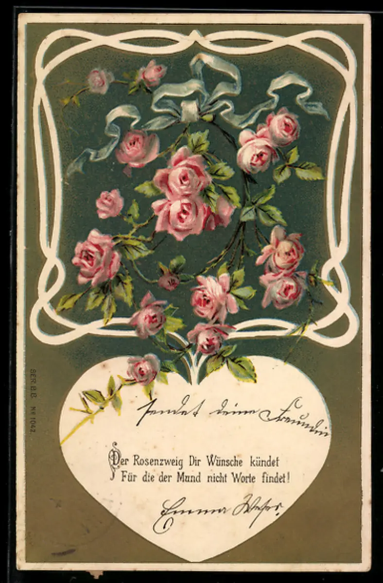 AK Rosen mit blauer Schleife