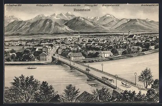 AK Rosenheim / Bayern, Gesamtansicht mit Gebirgswand