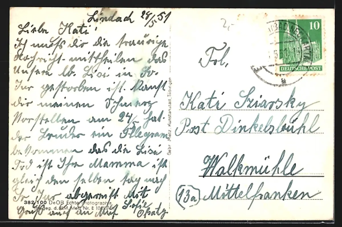 alte Ansichtskarte, gelaufen 1951, guter Zustand