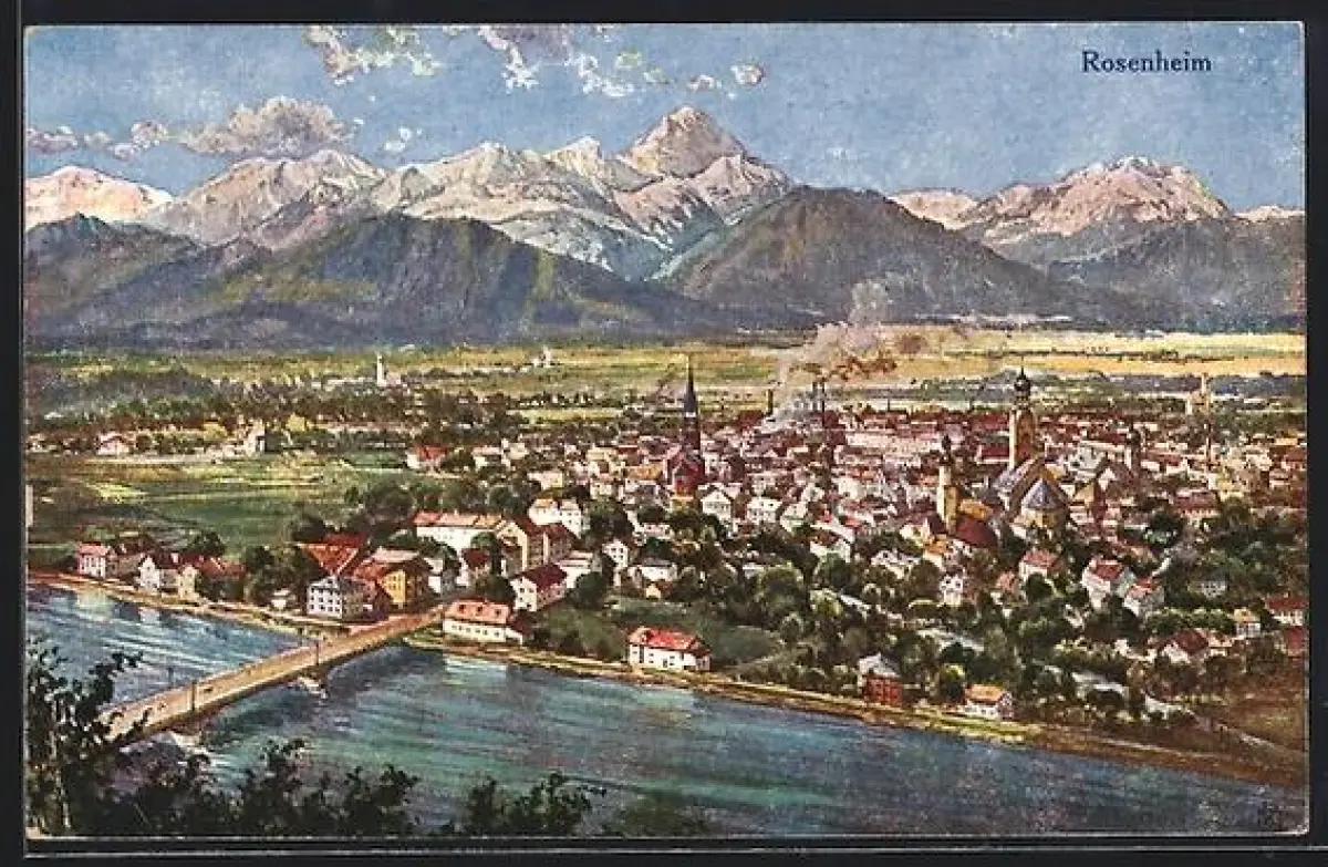 AK Rosenheim am Inn, Blick gegen den Wendelstein