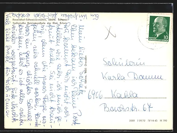 AK Rosenthal-Schweizermühle /Sächs. Schweiz, Technische Betriebsschule der Rbd. Erfurt