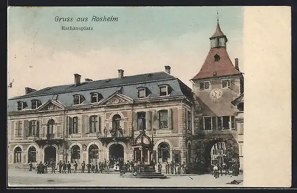 AK Rosheim, Rathausplatz mit Brunnen