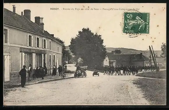 AK Rosoy, Entrée du Pays du côté de Sens, Passage d`une Compagnie du 89e