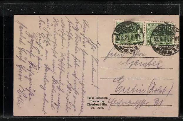 alte Ansichtskarte, gelaufen 1921, Stempelspur, guter Zustand
