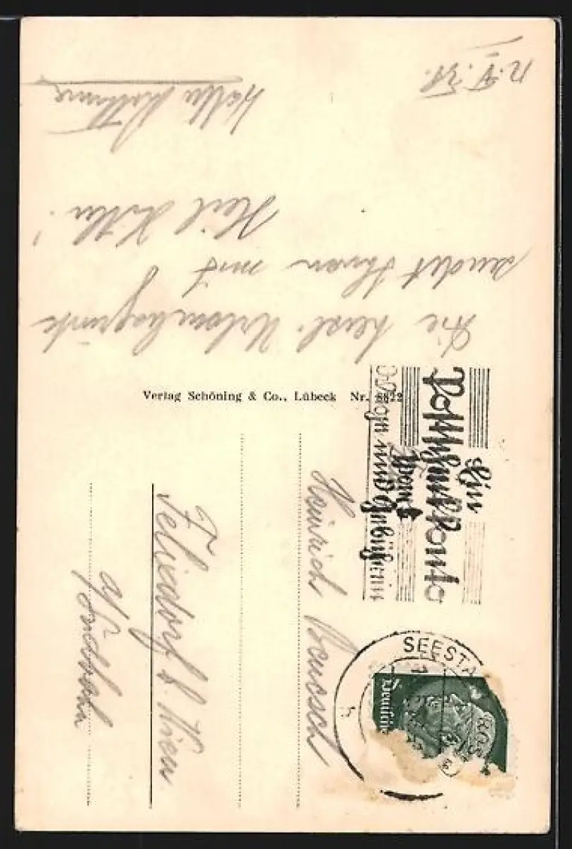 alte Ansichtskarte, gelaufen, Briefmarke entfernt, guter Zustand