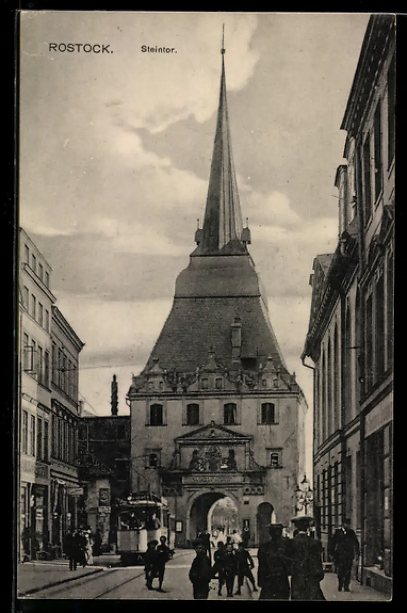 AK Rostock, Strassenbahn am Steintor