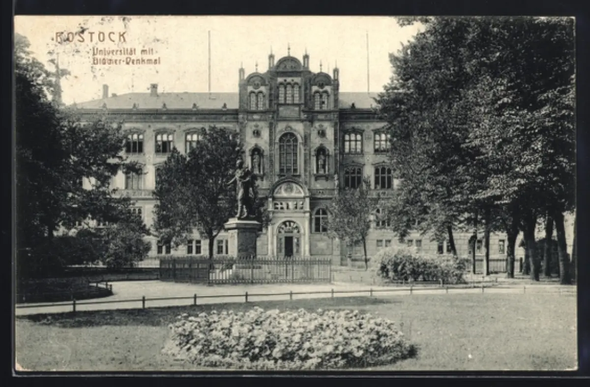 AK Rostock, Universität mit Blücher-Denkmal