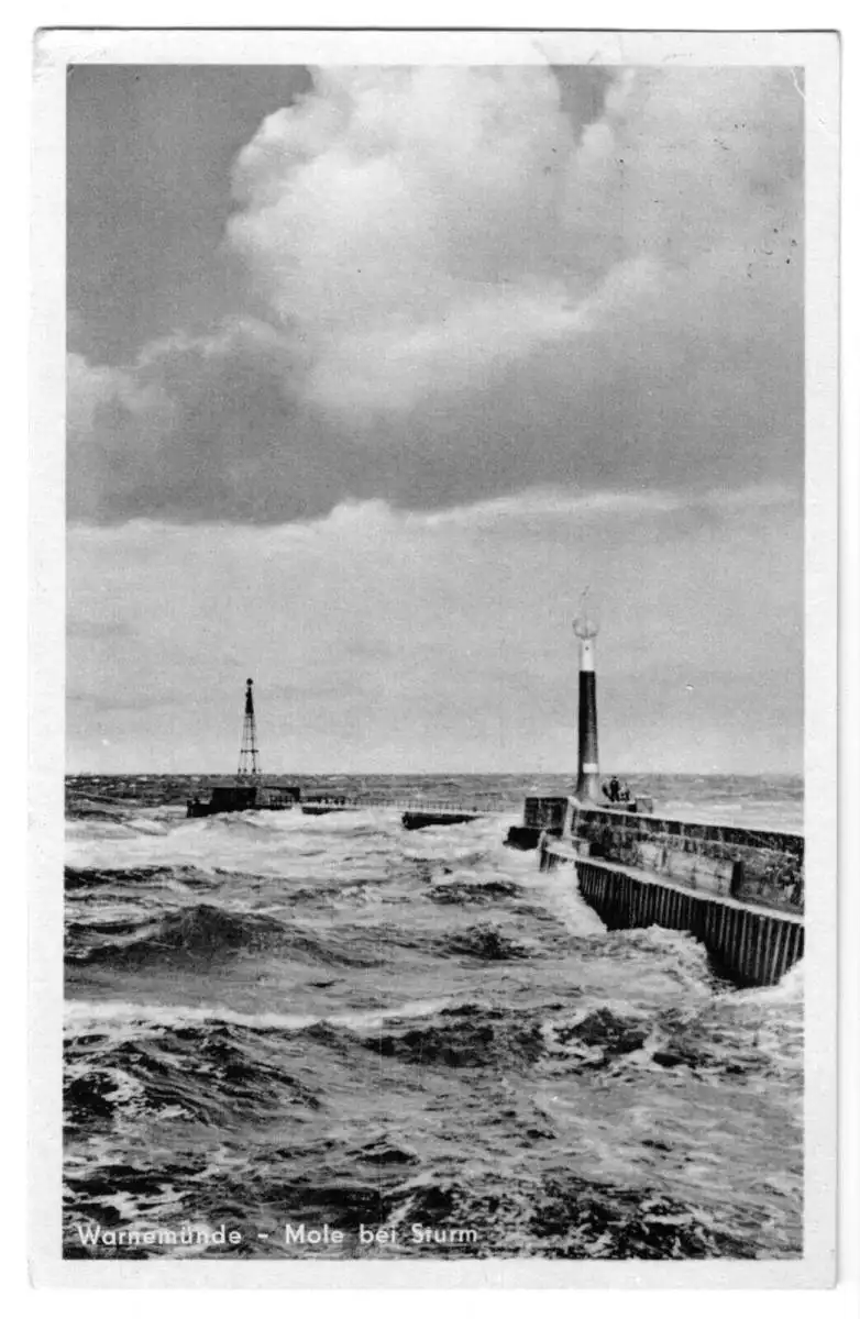 postalisch gelaufen, gestempelt: Warnemünde, 31.8.56