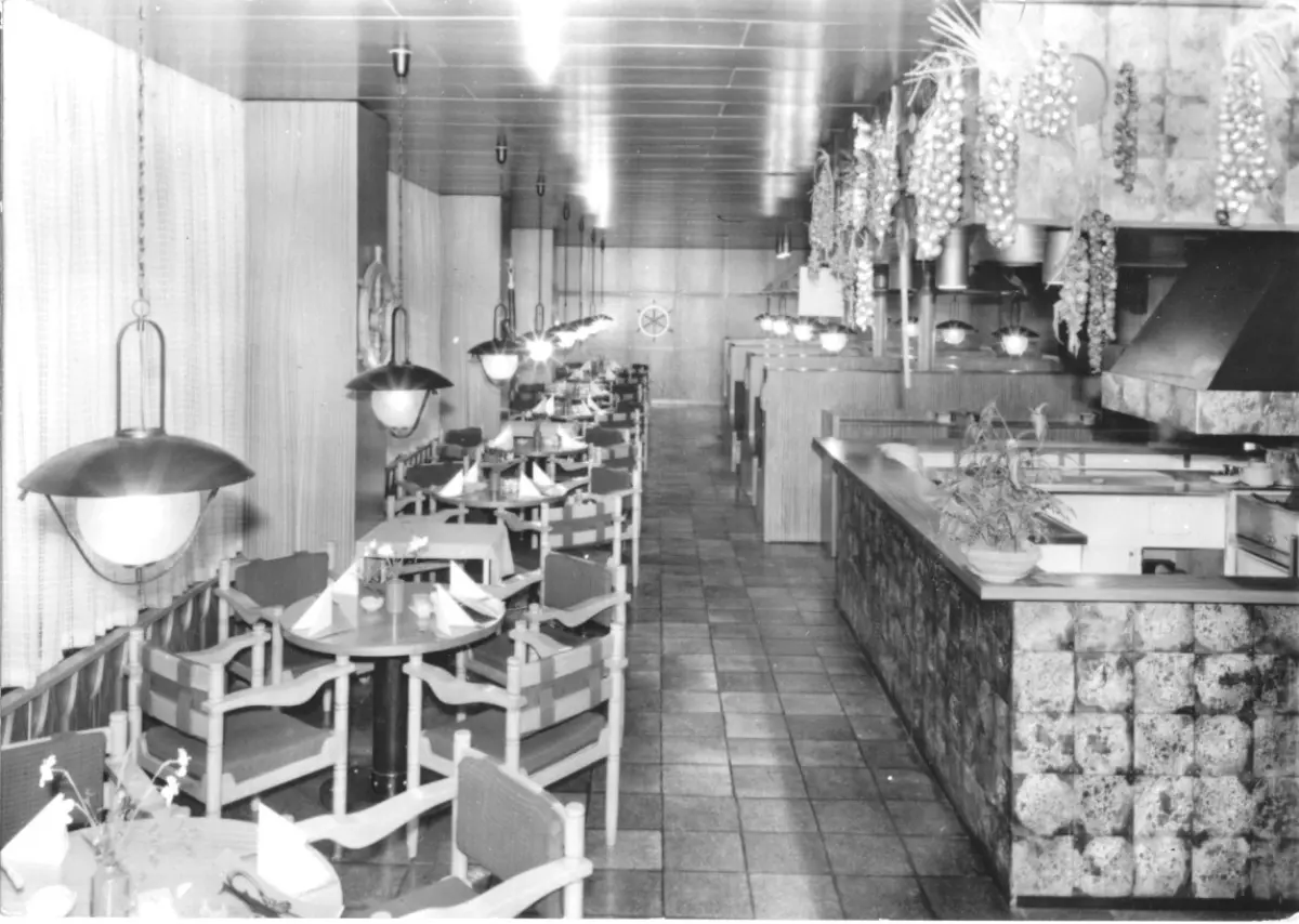 Ansichtskarte Rostock Warnemünde Restaurant "Seemannskrug", Gastraum Erhaltung I ungelaufen Druckvermerk: 1974 Herstellungsland: DDR Verlag: Bild und Heimat, Reichenbach - 01 01 31 291