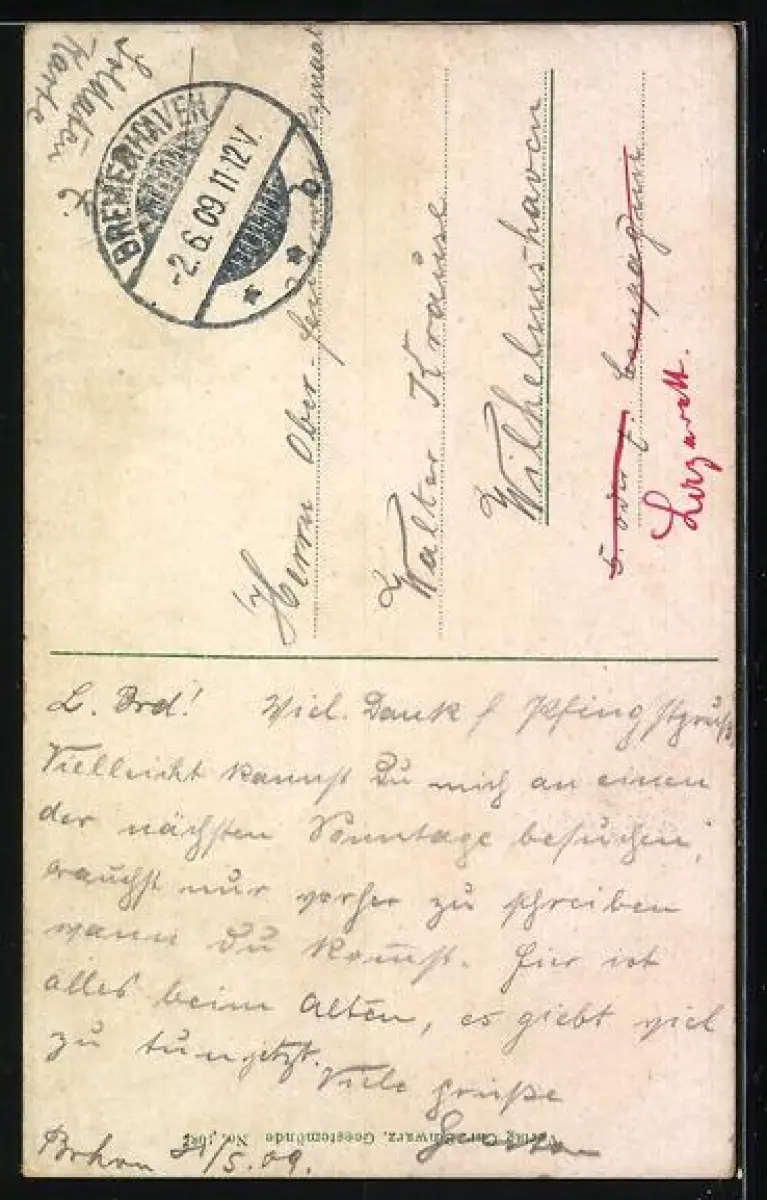 alte Ansichtskarte, gelaufen 1909, guter Zustand