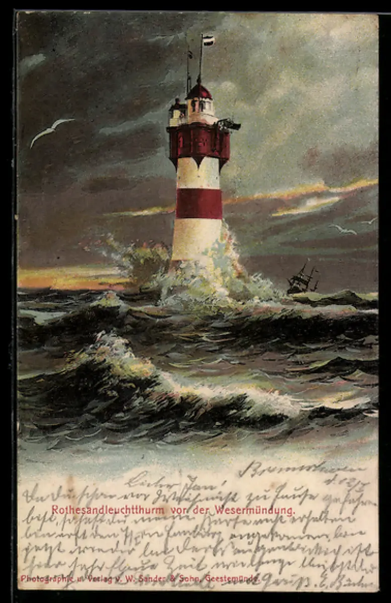 AK Rotesandleuchtturm vor der Wesermündung