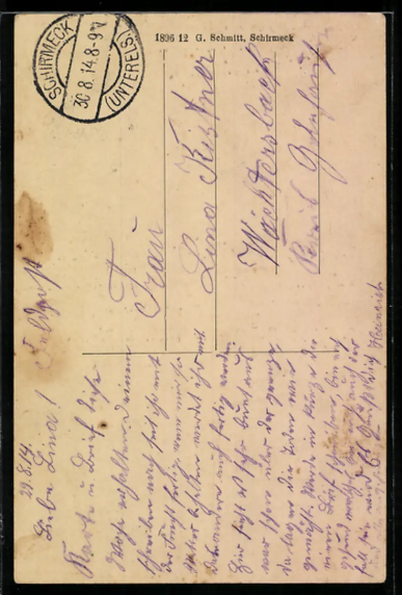 alte Ansichtskarte, gelaufen 1914, Eckknick li. oben, guter Zustand