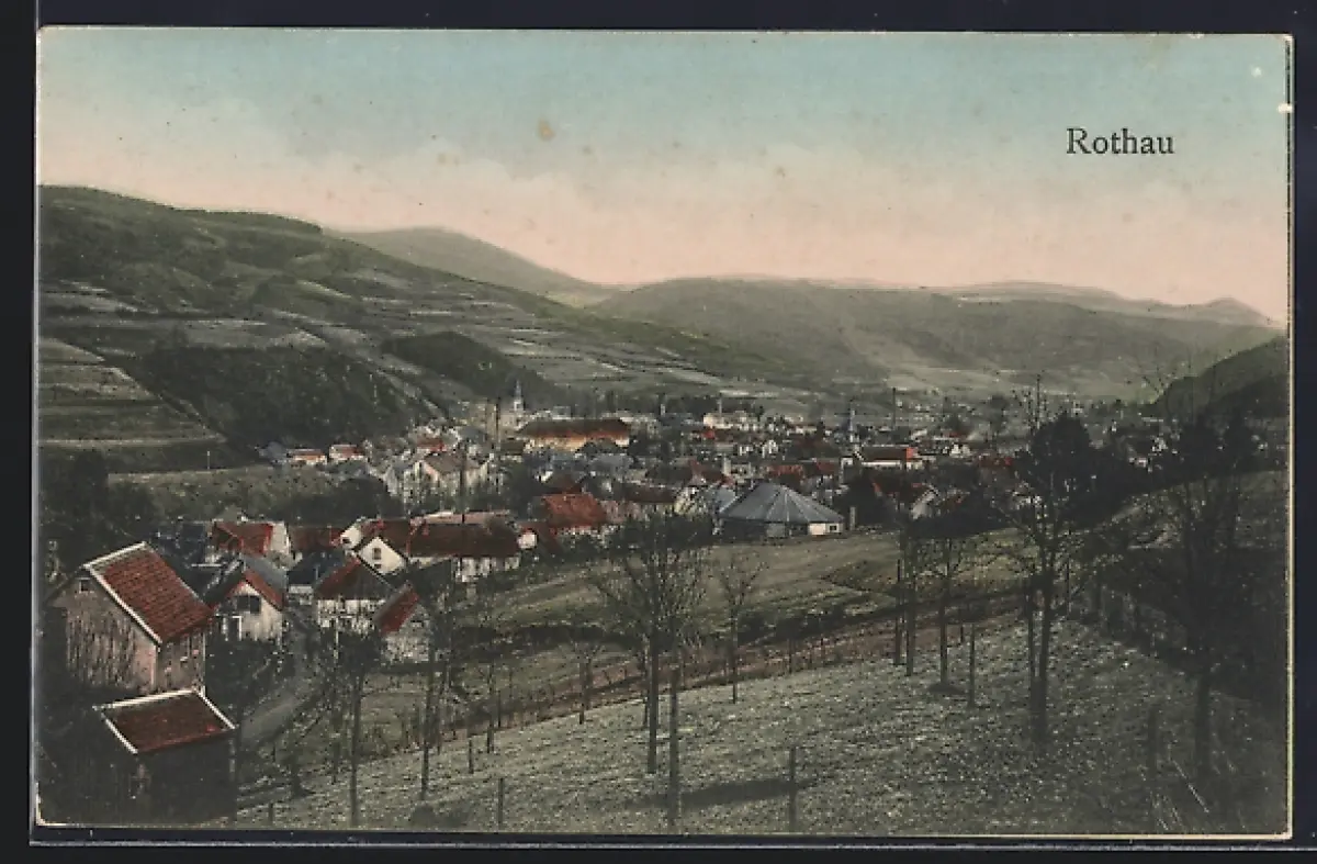 AK Rothau, Vue panoramique du village entouré de collines verdoyantes