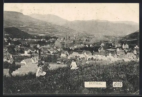 AK Rothau, zwei Kinder vor dem Ort