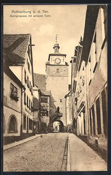 AK Rothenburg o. d. Tbr., Strasse Georgengasse mit weissem Turm