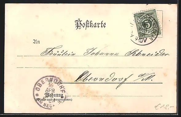 alte Ansichtskarte, gelaufen 1898, guter Zustand