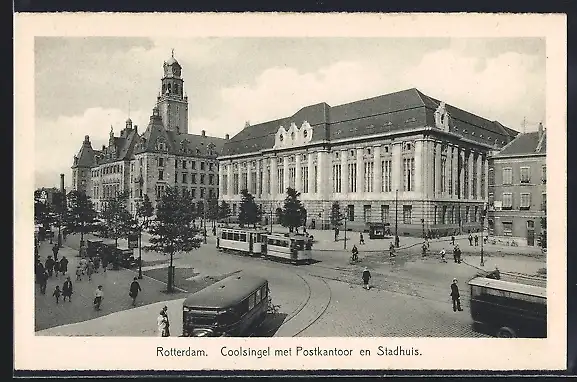 AK Rotterdam, Coolsingel met Postkantoor en Stadhuis, Strassenbahn