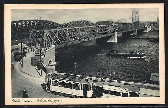 AK Rotterdam-Maasbruggen, Brücke mit Strassenbahn