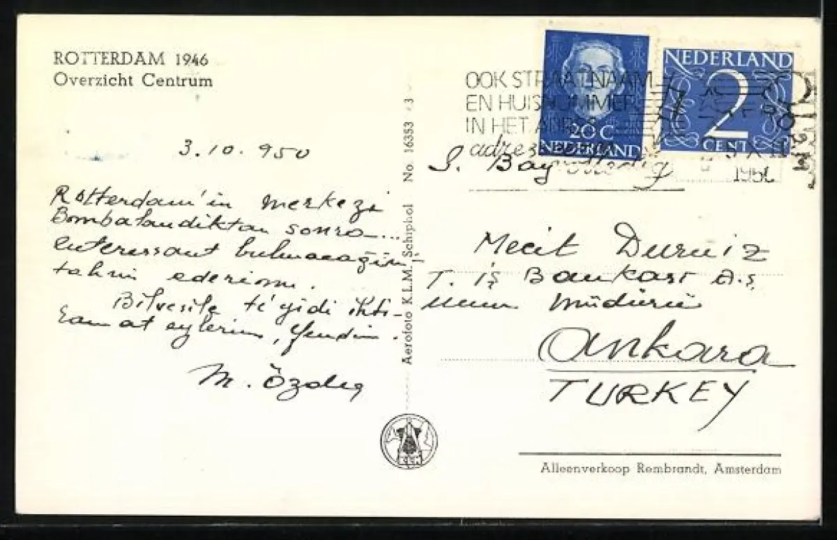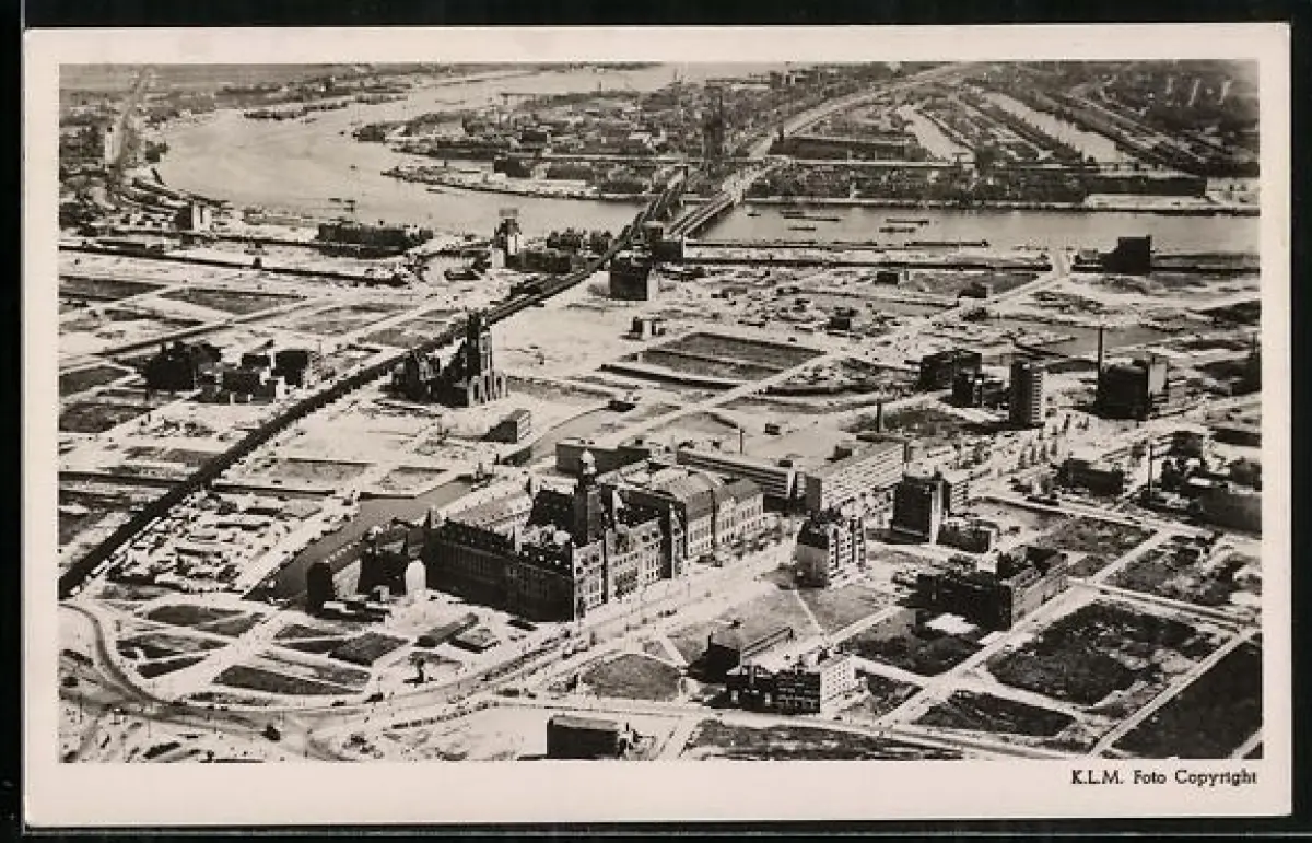 AK Rotterdam, Overzicht Centrum, Fliegeraufnahme 1946