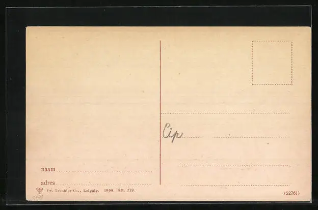 Personenbezogene Daten auf der Rückseite der Karte wurden durch blauen Textmarker unkenntlich gemacht. Die blauen Stellen sind auf die Vorderseite durchgeweicht und wirken sich negativ auf das Postkartenfoto aus