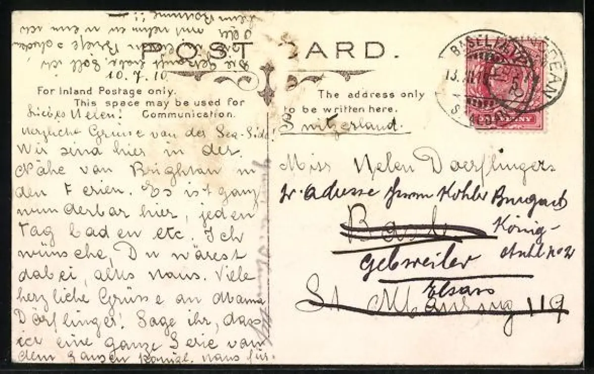 alte Ansichtskarte, gelaufen 1910, Eckknicke oben, guter Zustand