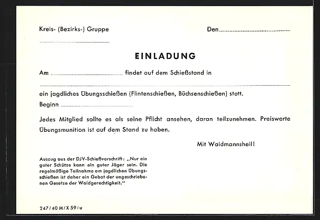 AK Rottweil, Einladung zum Übungsschiessen, Ente, Patrone