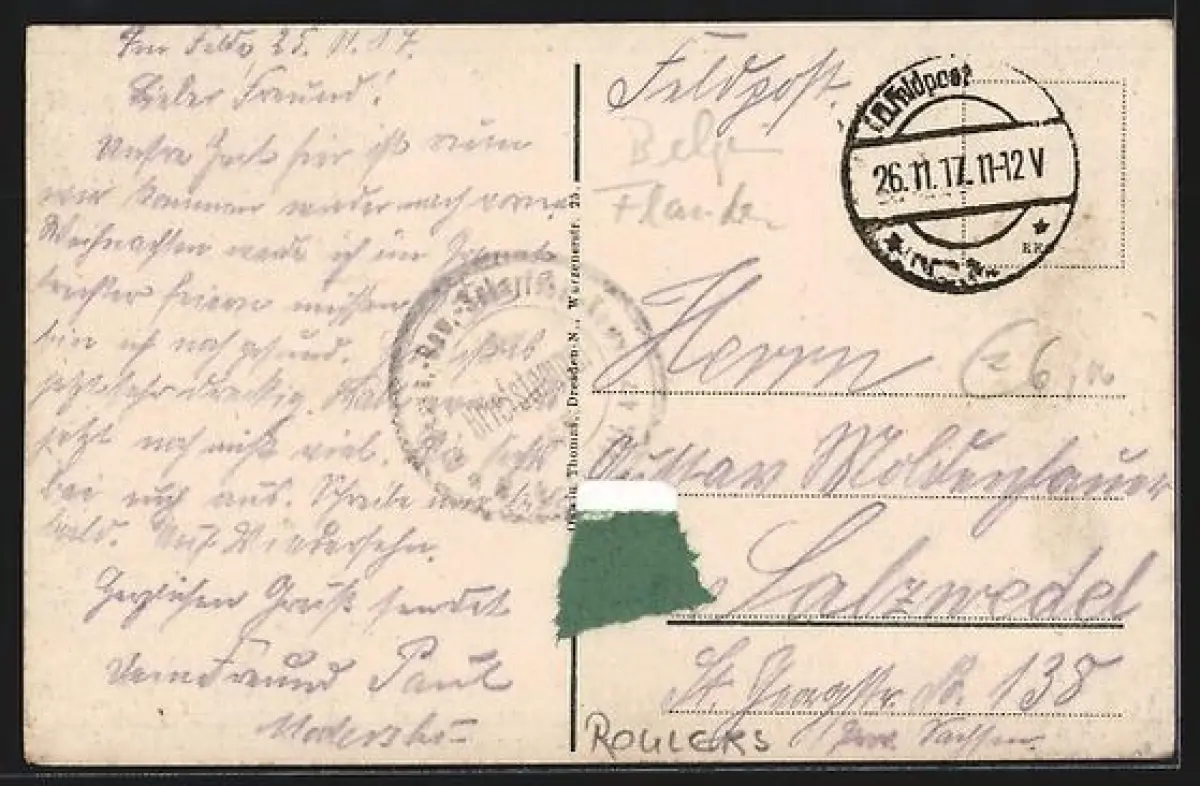 alte Ansichtskarte, gelaufen 1917, Stempelspur, guter Zustand